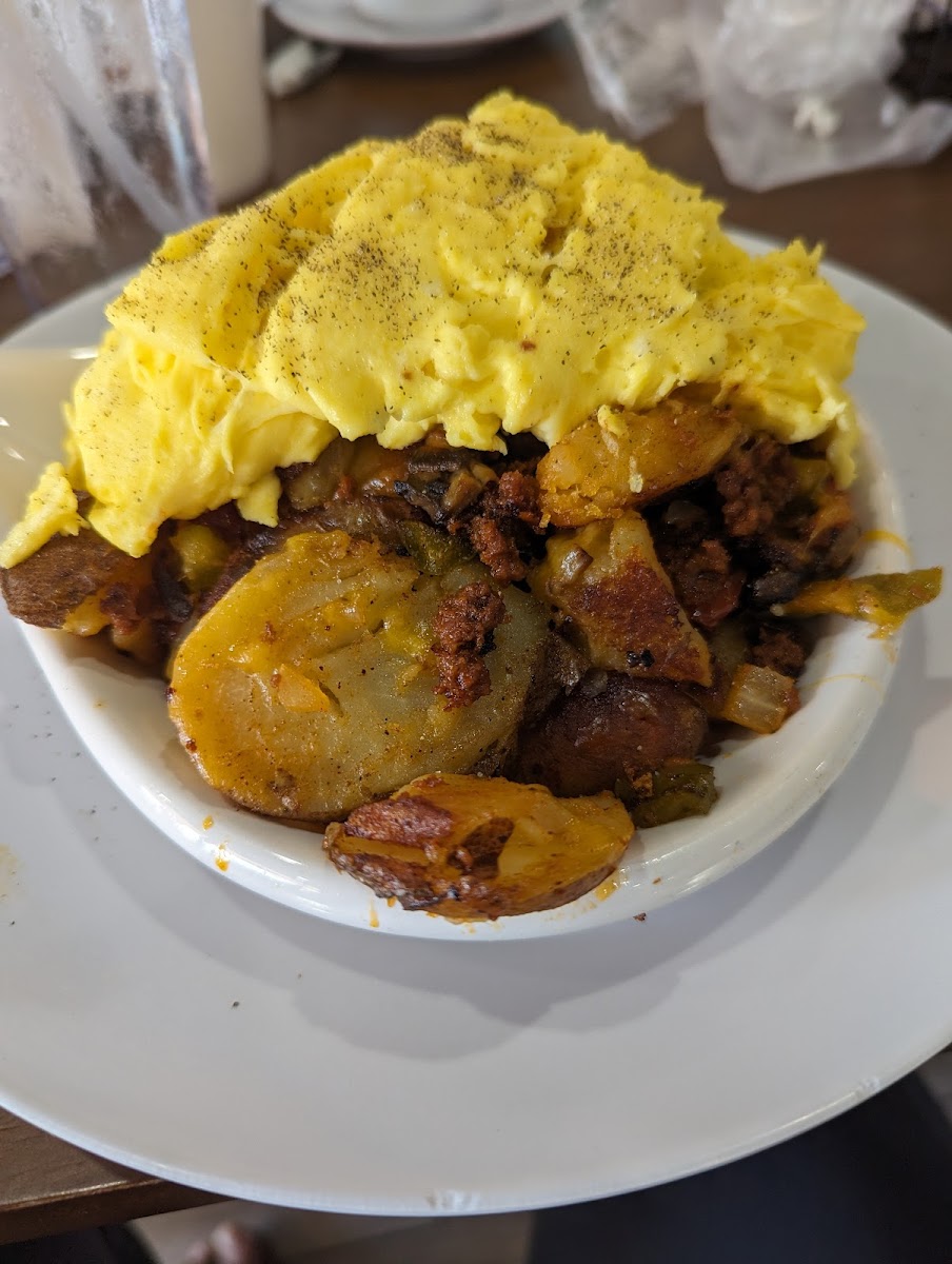 This is a great find! Breakfast choices are plentiful. I chose a cheeseburger, fries, and coleslaw. All of it was made from scratch. Fresh beef, rustic shoestring fries and long shredded coleslaw. Full service bakery goods and confections galore. MUST visit this café. Owner Jose is sincere and passionate about quality and freshness. 7 Stars